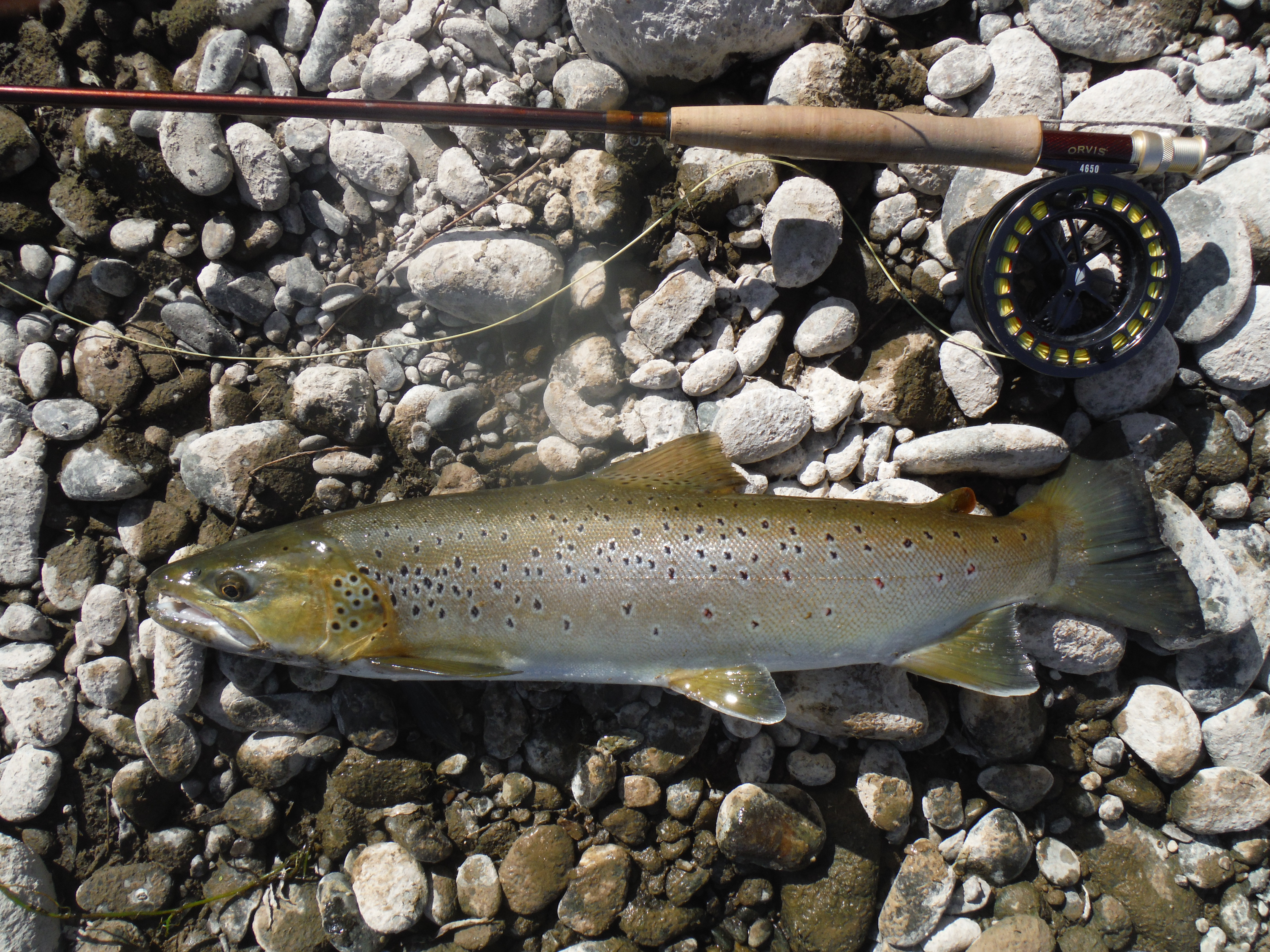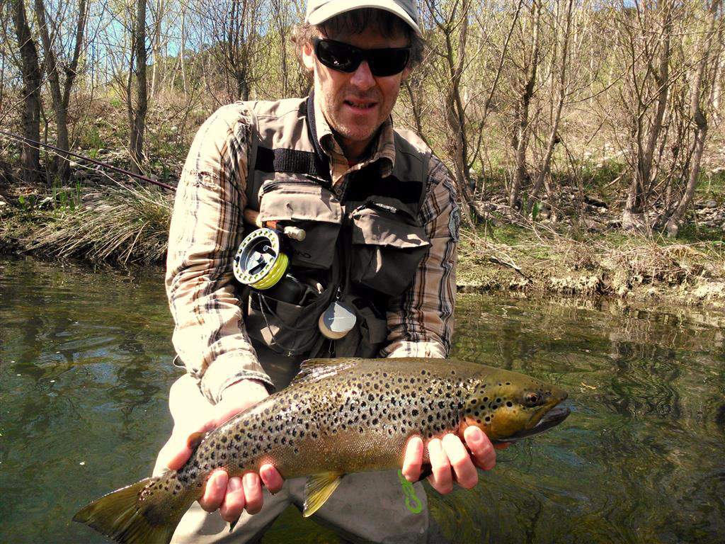 One hundred kilometers with the top waters for fly fish with our dry or wet flies, nymphs and streamers. The river is big and fairly clean. Near Andorra leads the river Valira, his biggest tributary. The Valira’s waters in Spain are very good and nice for fly fish. Segre&Valira are two gradient stone rivers. The river Valira is a high gradient stone with 10 km of travel in Spain, then the river continous up stream to Andorra, the other country in the heart of the Oriental Pyrenees. River Segre have a part 50 Km of high gradient Stone, another part with 20 km of medium gradient stone and a 30 km final part of tailwater streams (Dams). In all the way the river have deep pools sometimes very large. In this pools we can fish large trout. The high Segre runs into a huge glacier trough. The landscape is beautiful and precious. High mountains and meadows where the river flows in a calm environment. 56% of the river is No Kill, the other part the law let to carry 4 trout of 22 cm minimum. In the lower areas of the river we can fish large specimens of brown trout and also large rainbows. The trout are very combative and wild. All the trout who lives in the gradient stone are wild trout, born in the river itself. Repopulation are not allowed in this area.